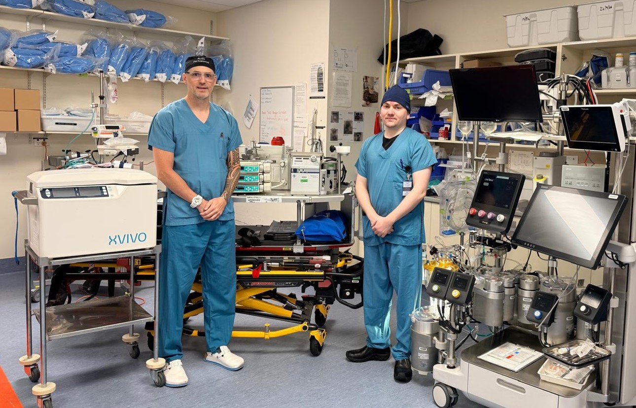 Auckland Perfusionists with the XVIVO ‘heart box’ used for transporting transplant hearts, ECMO Transport stretcher and Essenz Heart Lung Machine.